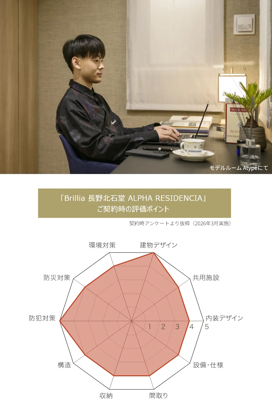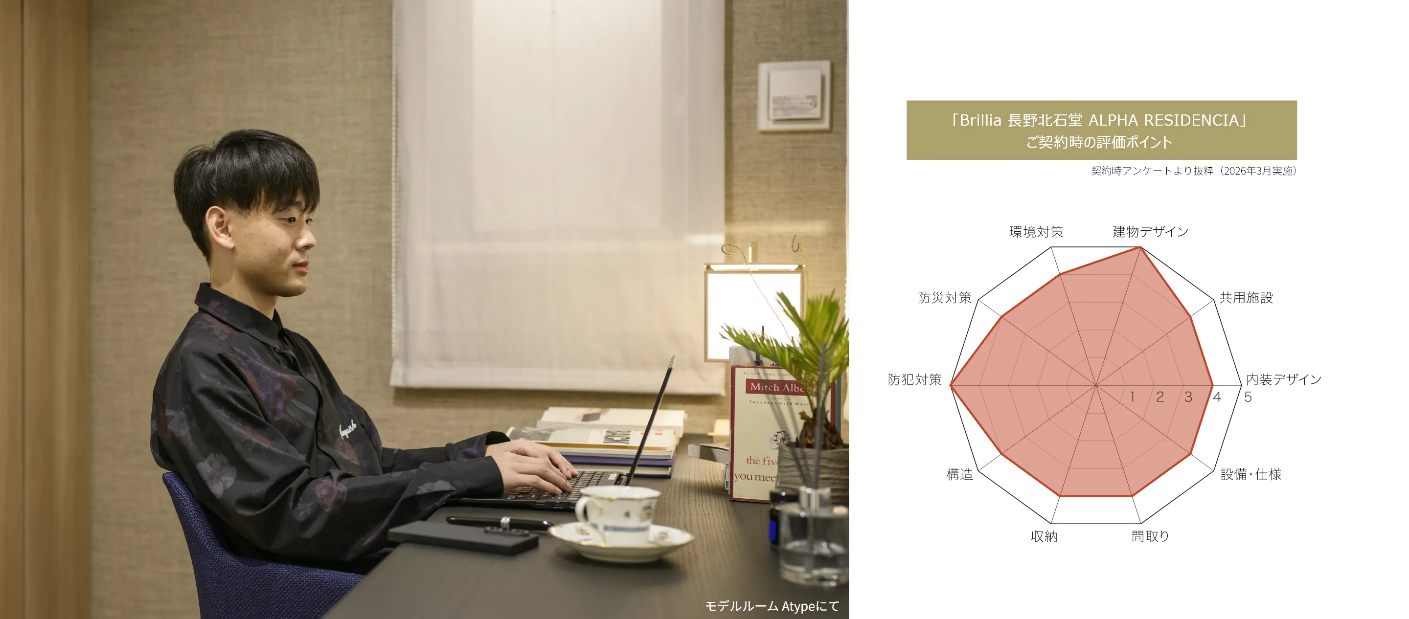 Brilliaというブランド自体はもともと知っていて、都内をはじめいろいろな場所で展開されている印象がありました。そういった意味での安心感はありましたね。実際にモデルルームを見たときも、空間としてきれいなのはもちろんですが、家具のセンスや素材の使い方も含めて、全体的に落ち着いた印象で良かったです。